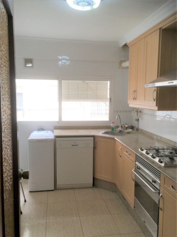 Se distribuye en amplio hall, 3 habitaciones, 2 baños, cocina equipada y amplio balcón. Tiene siete armarios empotrados.