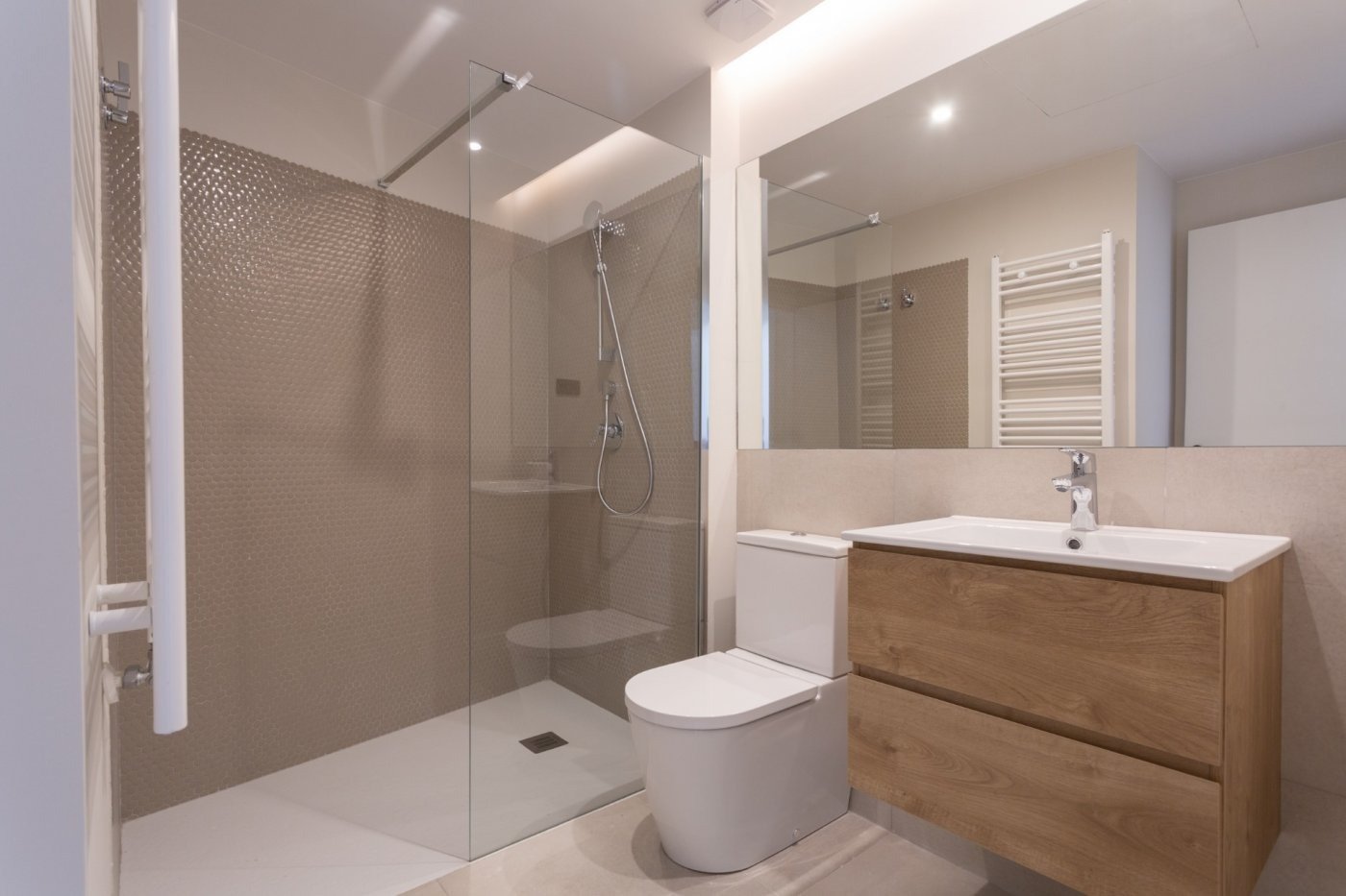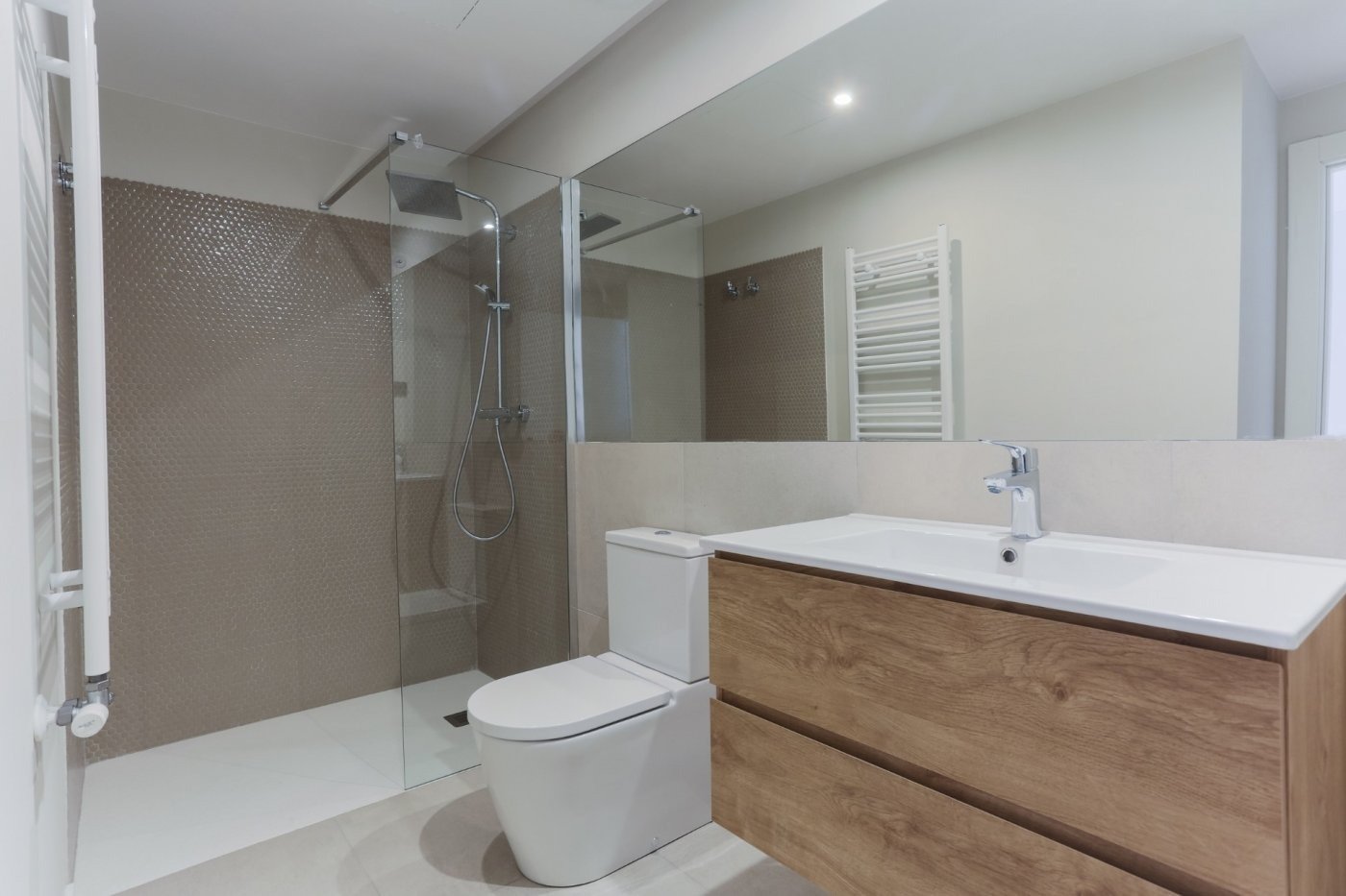 La vivienda consta de 2 baños completos, con platos de ducha enrasados, uno de ellos en suite y el otro para dar servicio al resto de estancias.
