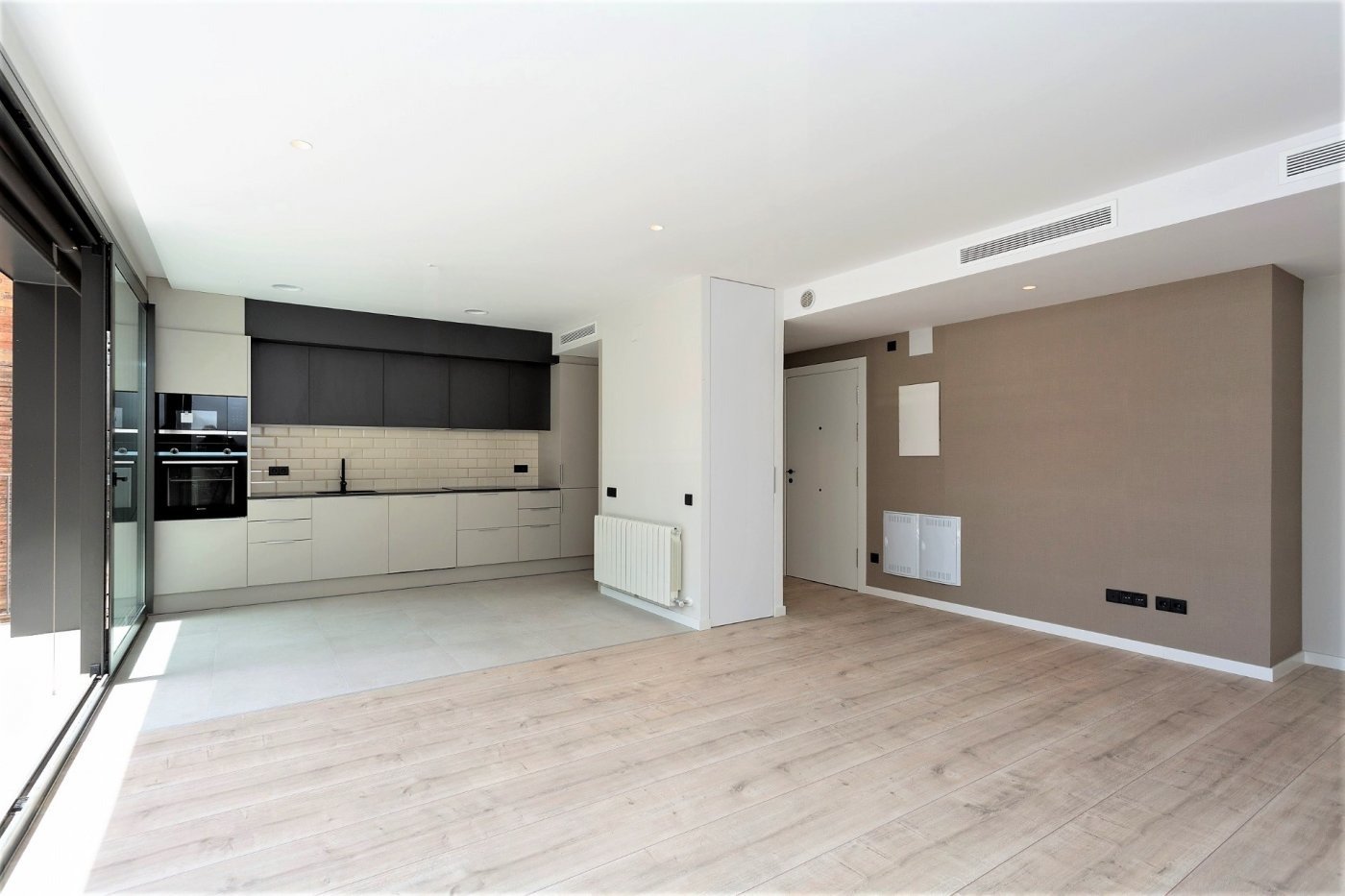 La zona de día está formada por un salón/comedor con grandes ventanales panorámicos, salida al balcón, altos techos y cocina abierta completamente equipada con electrodomésticos integrados de la marca Siemens.