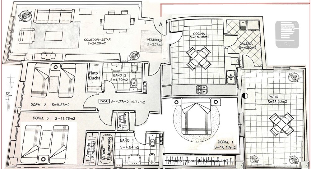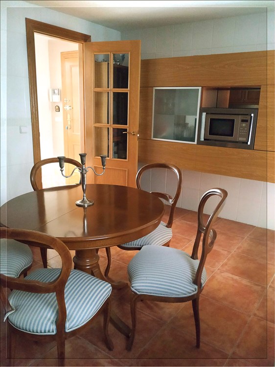 Este bonito piso seminuevo exterior esta situado en muy buena zona. La vivienda tiene 115 metros y patio de 14 metros y dispone de tres habitaciones, dos baños completos ( uno de ellos con bañera de hidromasaje ), un salón comedor y una cocina office con galería y un amplio patio. Hay que destacar que cuenta con altas cualidades como por ejemplo la calefacción centralizada, el descalcificador de agua, la carpintería de roble, el parquet y la puerta blindada. En el precio también están incluidos una plaza de garaje y un trastero.