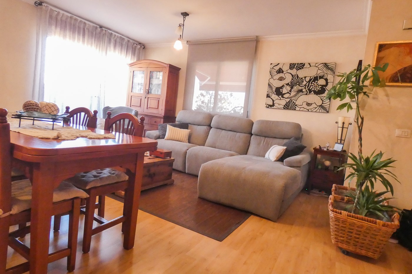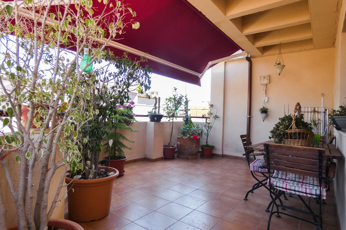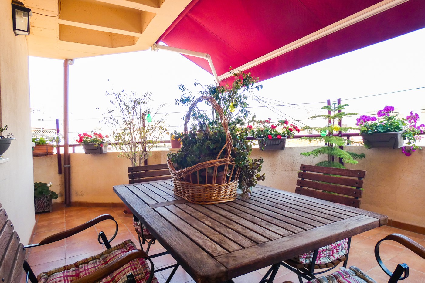 Si lo imprescindible para ti es la terraza, esta vivienda te encaja a la perfección. Cuenta con un gran salón-comedor de paso desde el cual tienes acceso a la primera terraza, una cocina completamente equipada buen conservada, cuatro dormitorios exteriores, dos baños (uno cuenta con bañera y el otro con ducha) y una segunda terraza. Cabe destacar que cuenta con calefacción frio-calor y que en el precio están incluidos un trastero de 10 y una plaza de aparcamiento.