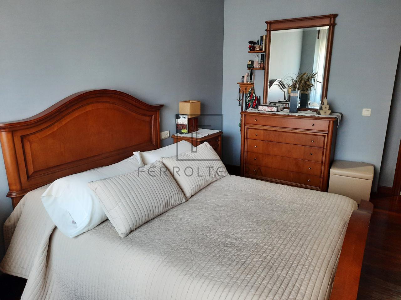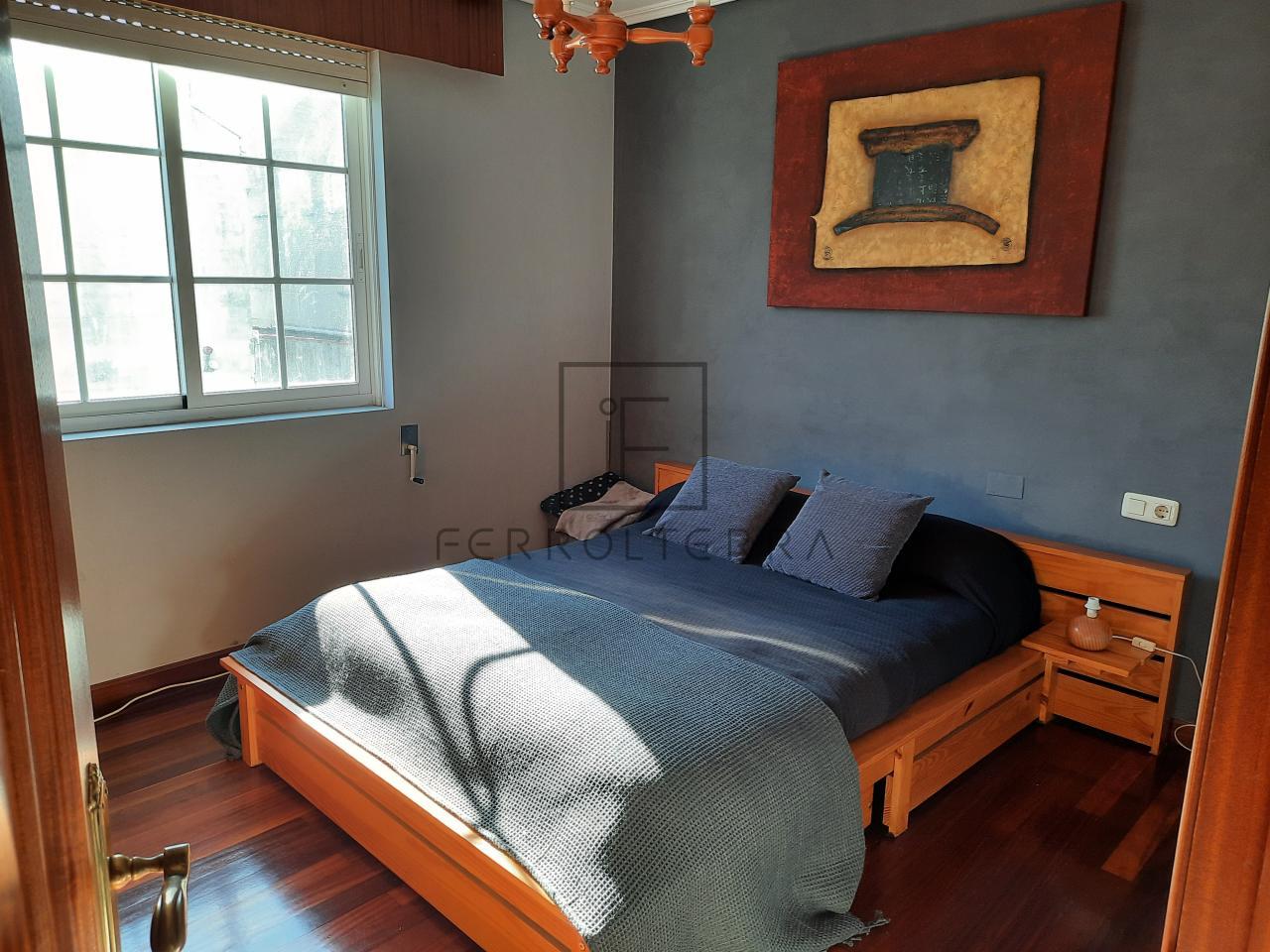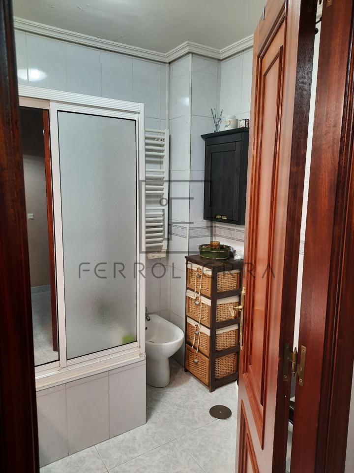 Cerca del ayuntamiento de Narón, tenemos este segundo piso dividido en un amplio y confortable salón con comedor. Dos dormitorios, uno con cama doble y otro con sofá-cama que se usa actualmente como despacho, que comparten un baño completo con bañera. El dormitorio principal con baño propio y zona de armario-vestidor. Una cocina bien distribuida, con comedor de diario, zona de lavandería y un armario/despensa en el pasillo completan esta vivienda.