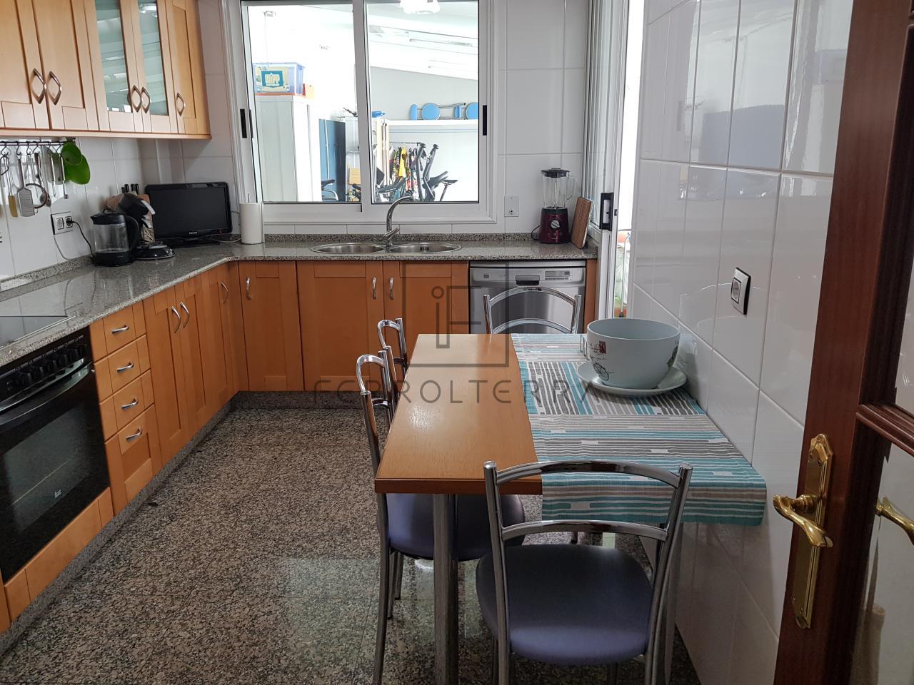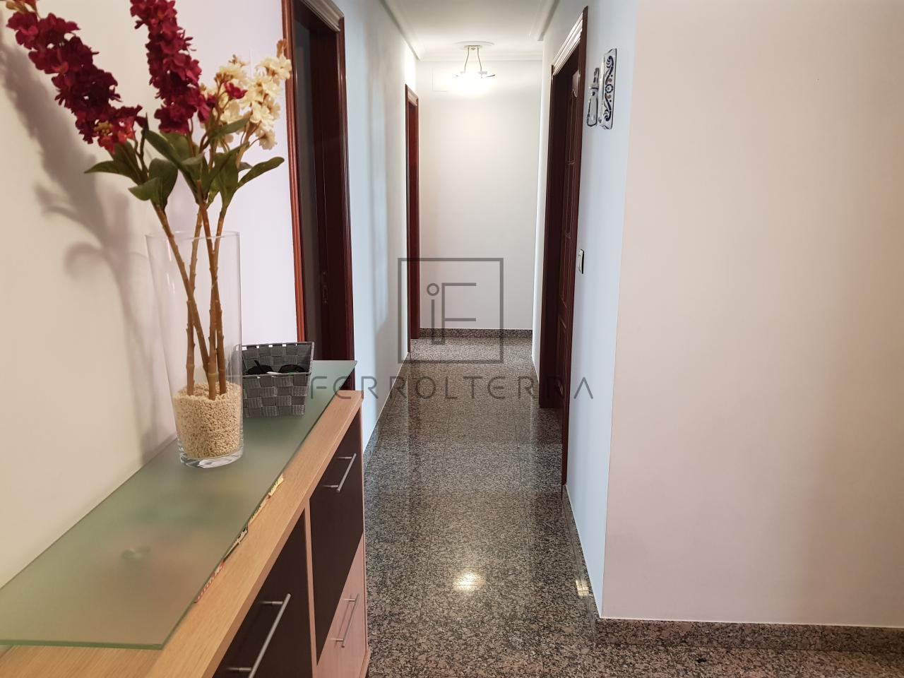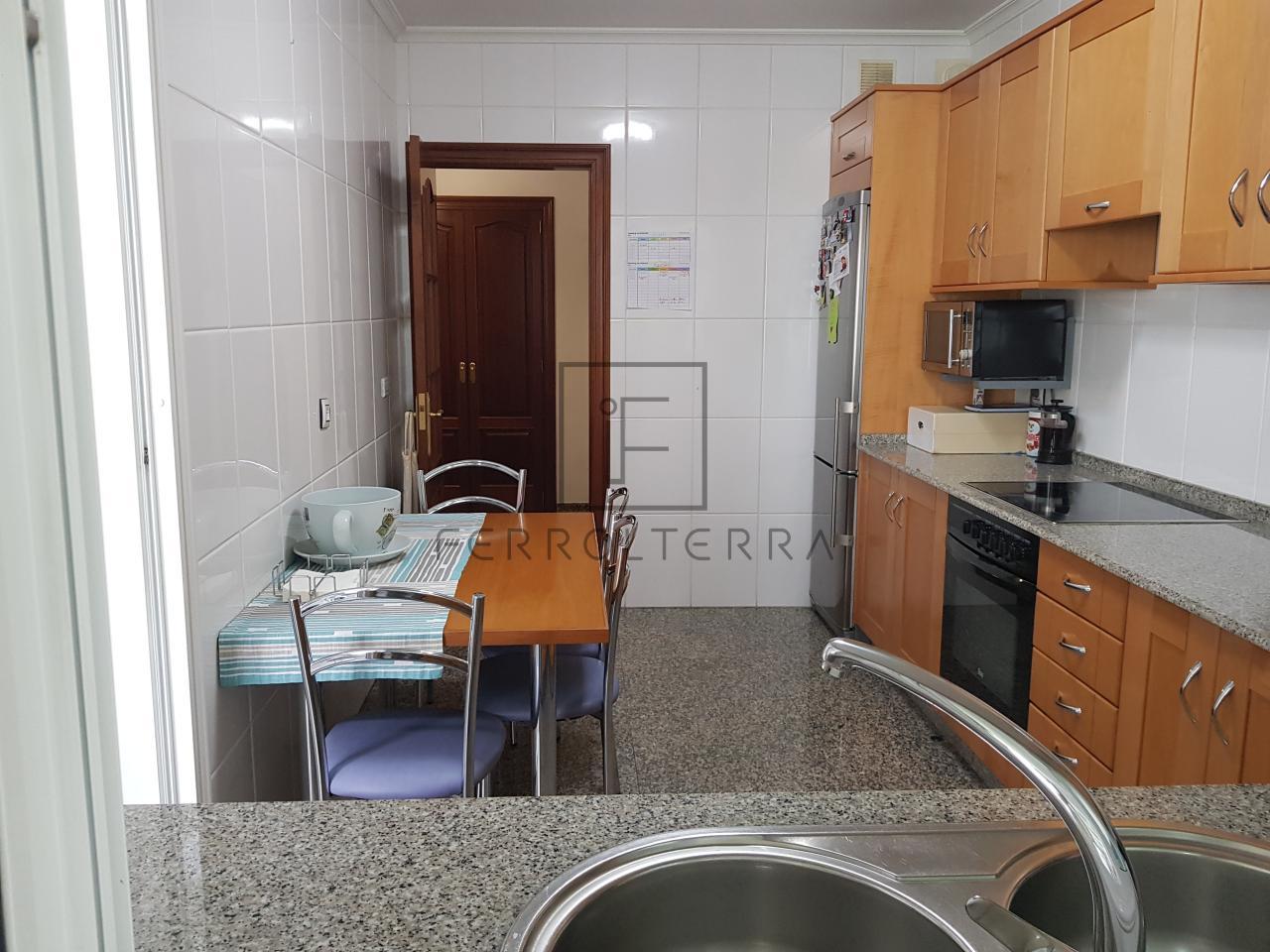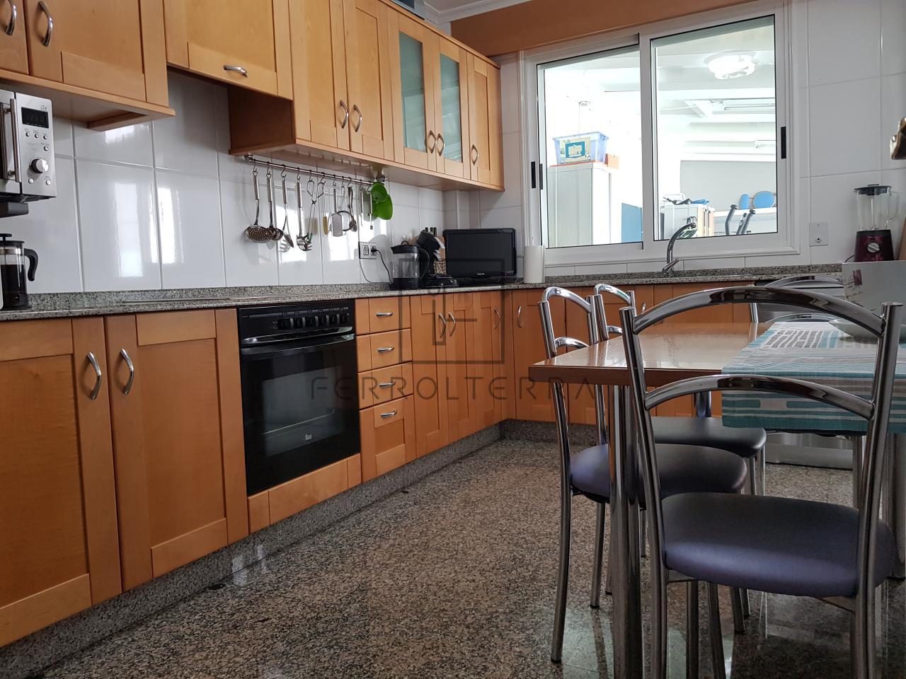 Vivienda de 100m2 distribuida en hall de entrada, salón comedor, 4 dormitorios, uno actualmente utilizado como despacho, el dormitorio principal con baño con plato de ducha, el otro baño que comparten las otras estancias con bañera, cocina amueblada con electrodomésticos, zona de lavandería, y la mencionada terraza con una parte completamente cerrada donde se encuentra el lavadero y la otra abierta.