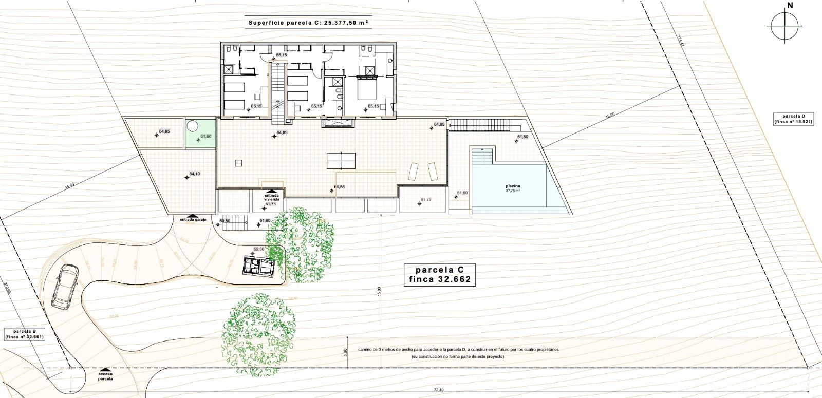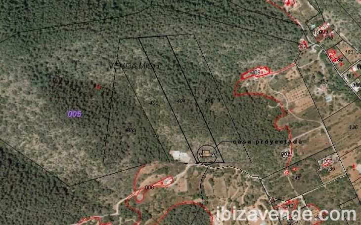Parcela en un emplazamiento único con licencia. La parcela tiene una superficie de 25.377,50 m2. Proyecto de vivienda unifamiliar de 372 m2. El terreno en forma de cuadrilátero irregular muy alargado, cuyo lado más meridional tiene un punto de tangencia con el camino de tierra actual. La parte sur del terreno tiene una pendiente relativamente suave, que se va empinando a medida que se asciende hacia el linde norte. Es esa parte sur la que se ha escogido para edificar la casa, tanto por ser la más inmediata al camino de acceso, como por ser la de pendiente más suave y más despejada de arbolado.(Vivienda 310 m2, garaje + aseo 41 m2, porches 8,7 m2, pérgola 11,75 m2)Tenemos muchas más casas, apartamentos, villas, fincas, locales comerciales y terrenos en alquiler y venta en la isla. Gracias por considerarnos como su agencia inmobiliaria en Ibiza.