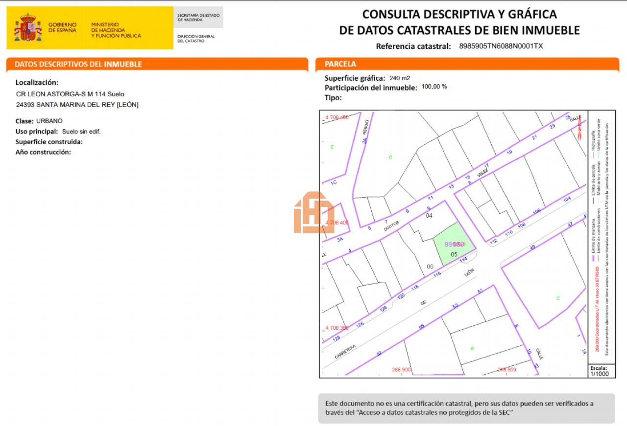 Finca urbana en San Martín del Camino, situada en la carretera genera de 240 m2 ideal para una pequeña vivienda unifamiliar con dos plantas.
