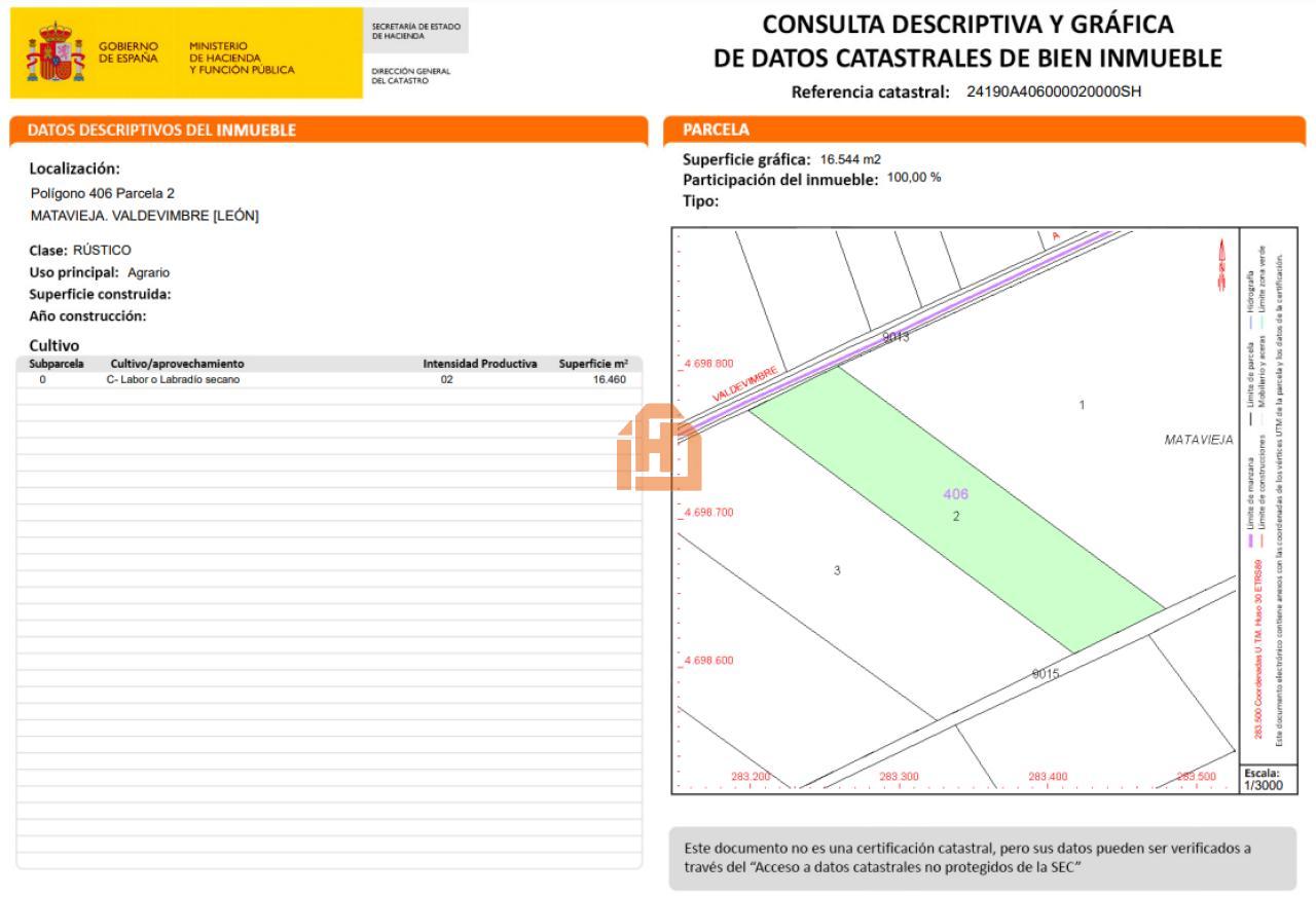 Finca rustica de secano, de 16544 m2 situada en Valdevimbre en la carretera de Santa María del Páramo, próxima al casco urbano.